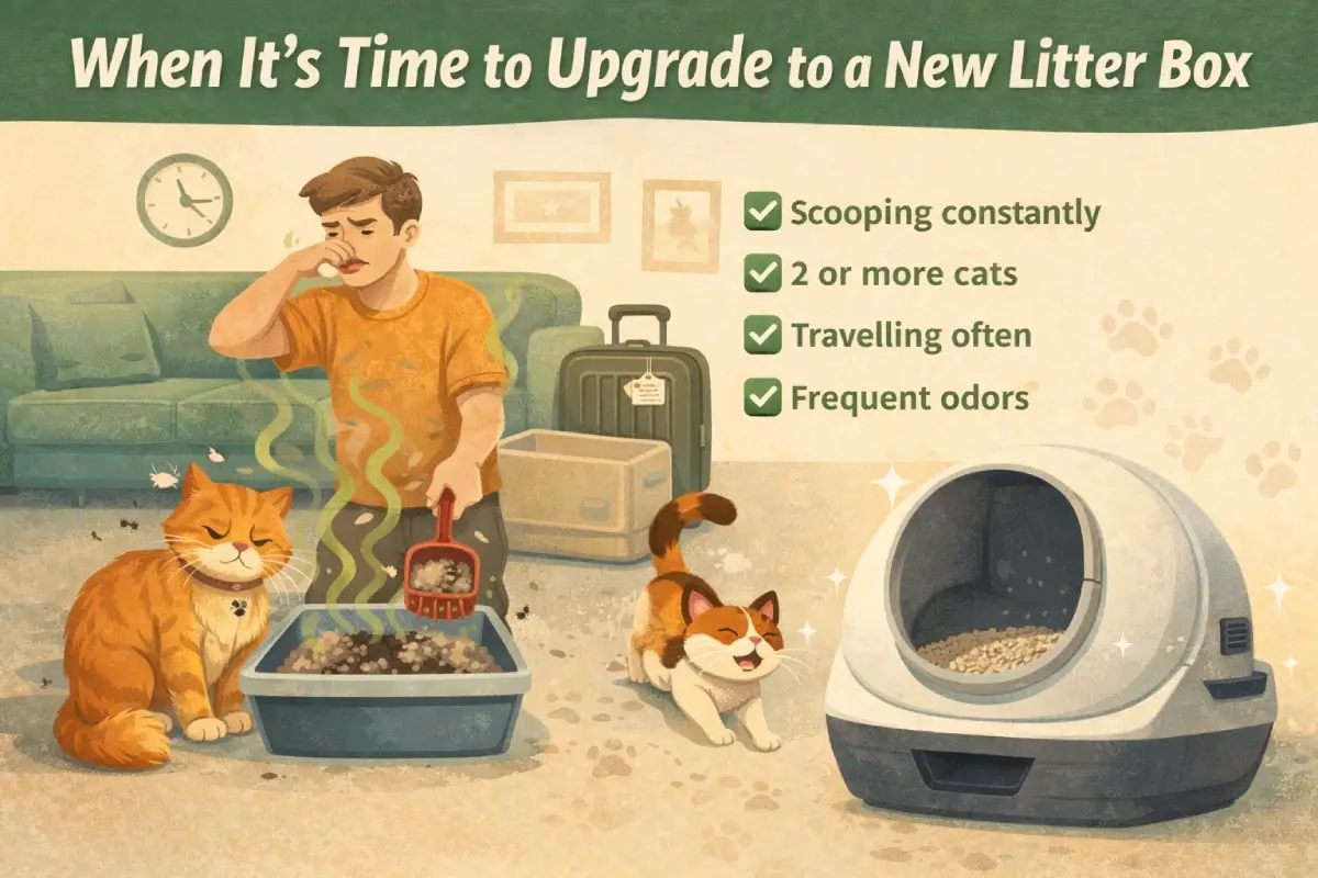 Upgrading won’t eliminate maintenance entirely, but it can significantly reduce daily scooping and help maintain a cleaner environment between full litter changes.